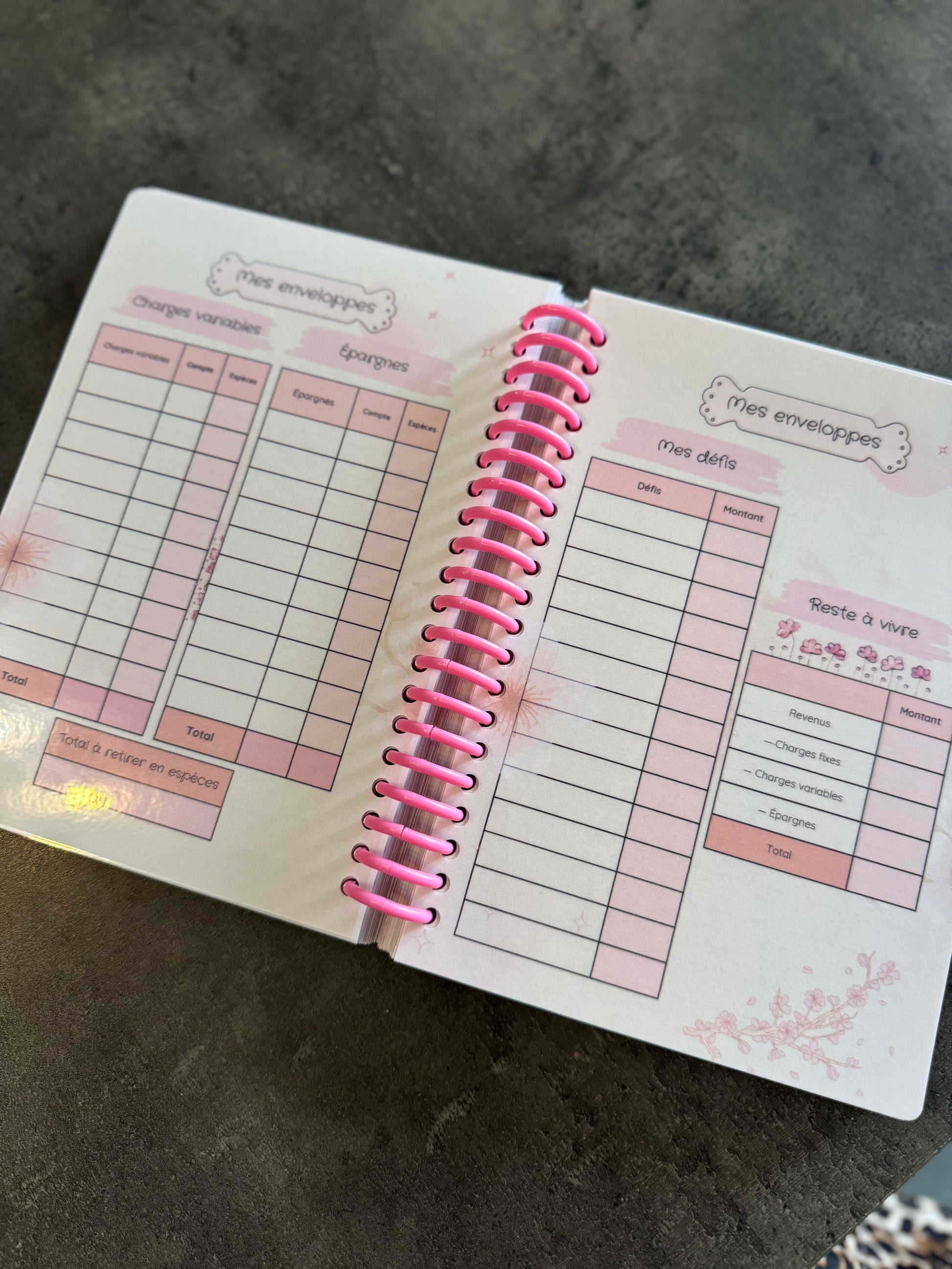 Organisez vos finances avec élégance grâce à ce budget planner méthode des enveloppes au design rose fleuri.