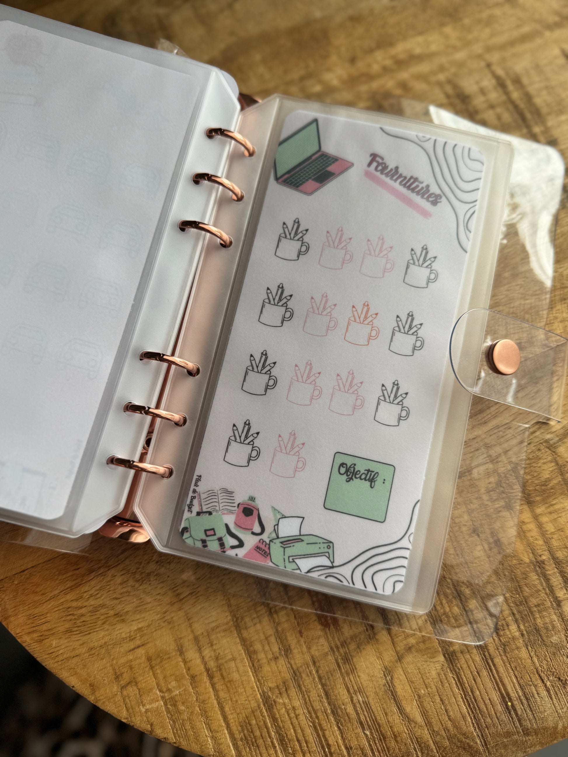 Inclus le classeur transparent A6, une page de garde et 5 enveloppes non zippées